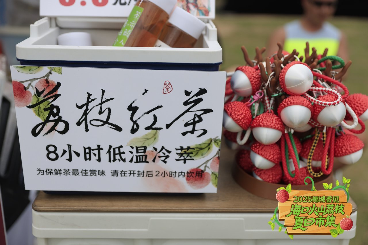 市集还设置了海口火山荔枝展销摊位,实现荔枝“现场买、现场寄”,成为链接农户、消费者取全国市场的纽带,消费者可现场挑选鲜果、礼盒,并通过冷链物流间接寄往全国,实现“枝头美味48小时达”。